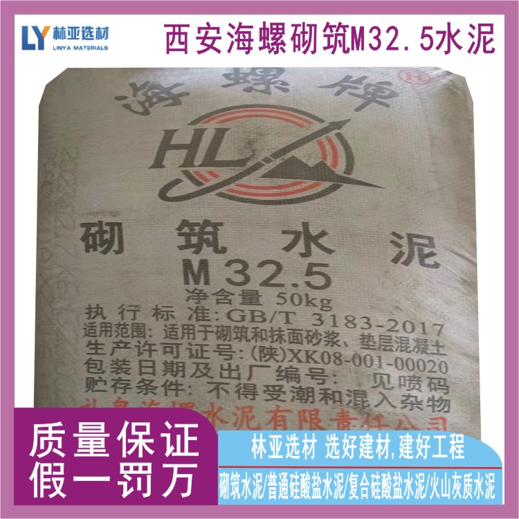 海螺牌砌筑M32.5袋装水泥,,由一种或一种以上活性混合材料或具有水硬性的工业废料为主要原料,加入适量硅酸盐水泥熟料和石膏,经磨细制成的水硬性胶凝材料。