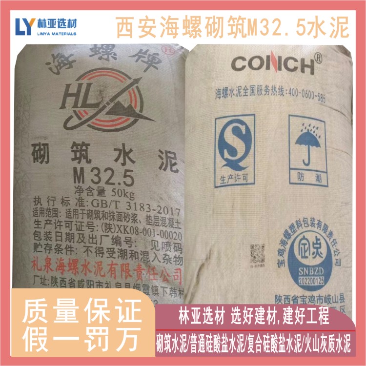 海螺牌砌筑M32.5袋装水泥,,由一种或一种以上活性混合材料或具有水硬性的工业废料为主要原料,加入适量硅酸盐水泥熟料和石膏,经磨细制成的水硬性胶凝材料。