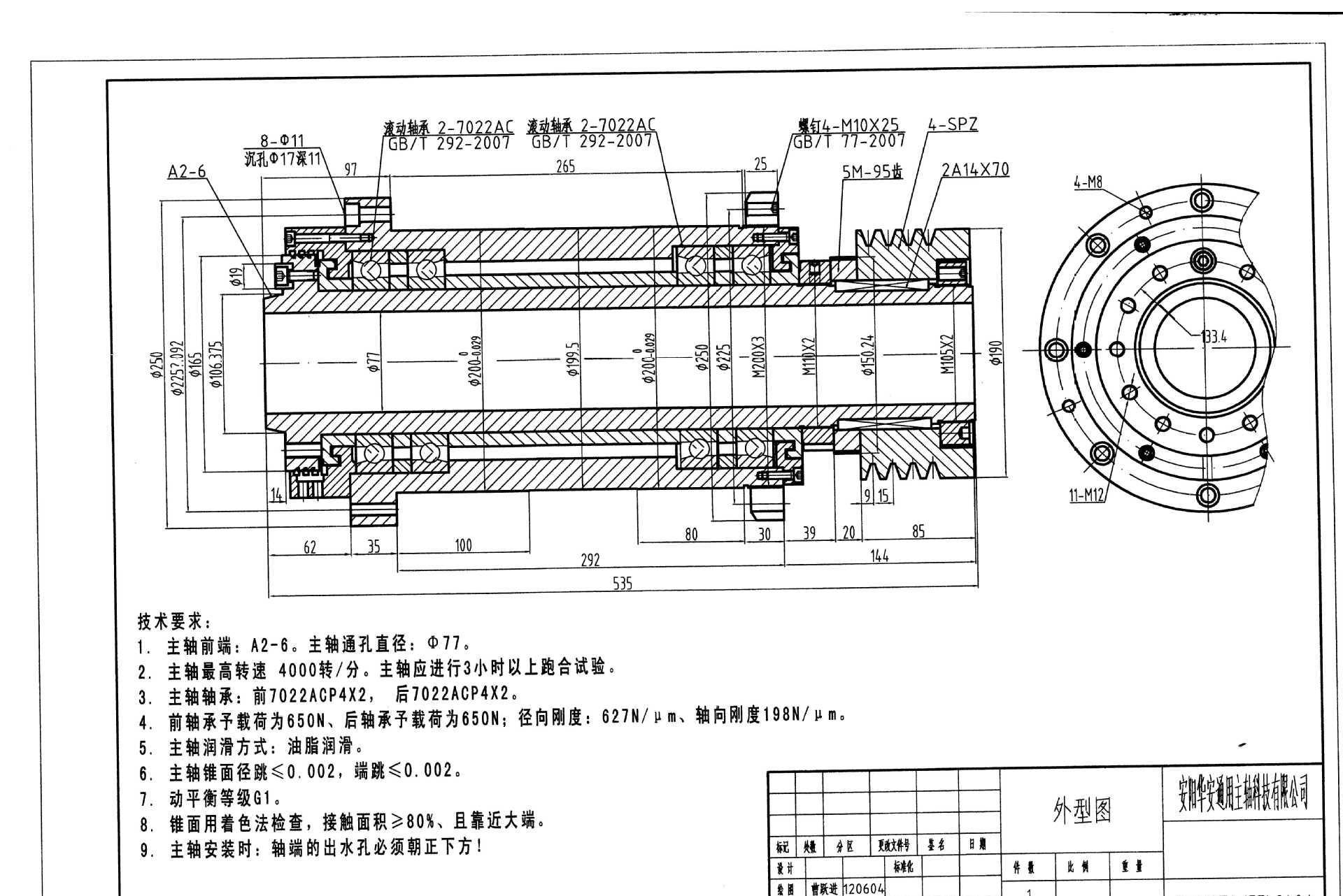 Z加工中心主轴(自动换刀、机械换刀)BT40、BT50主轴(