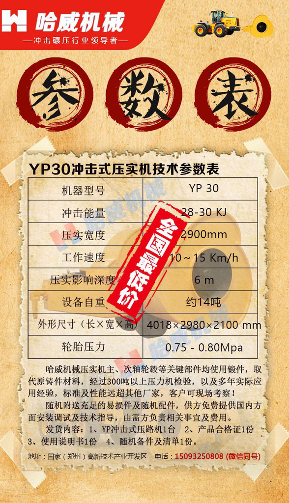 郑州哈威YP-30冲击式压路机振动压路机厂家专卖阆中市型号15515 997113 冲击压路机