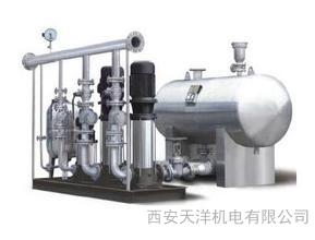 恒压供水设备采用气压式供水。利用密封罐体,利用罐内高压气水压力达到供水目的。具体工作顺序是由水泵将水通过逆止阀压入罐体,使罐内气体受到压缩,压力逐渐增大。当压力达到指定上限时电接点压力表通过控制柜使泵机自动停止。设备中的水压高于外界管网压力,自动送水至供水管网。当罐体内水位下降,罐内气体膨涨压力减小到指定的下限位置时,电接点压力表通过控制柜使水泵重新启动。如此反复,使设备不停供水。当罐内气体不足时,补气阀可自动补气