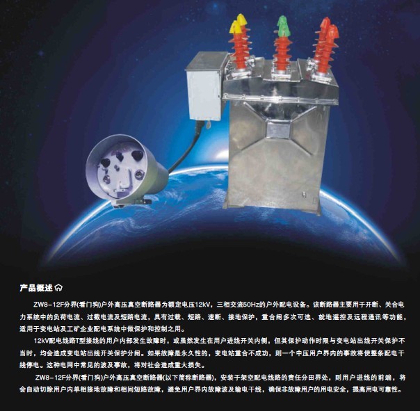智能型真空断路器ZW32-12M(以下简称断路器)是三相交流50Hz,适用于额定电压为7.2~12kV的户外高压开关设备。断路器符合国标GB1984《高压交流断路器》及专业标准JB3855《3.6~40.5kV户外交流高压真空断路器》和相关的IEC标准。常供工矿企业、发电厂以及变电站作电气设备的控制和保护之用,并适用于频繁操作的场所。断路器具有多次开断和快速重合闸的能力。 ZW32-12M型户外高压智能真空断路器,是我公司自主研发的一种综合保护户外智能开关。它主要由真空断路器本体和控制器的及外置电压互感器三大部分组成,三者通过航空插座及户外密封电缆进行电气连接,具有故障检测功能,保护控制功能和通讯功能,能可靠判断、检测开关进、出线侧的毫安级零序电流及相间短路故障电流,实现自动切除单相接地故障和相间短路故障。 断路器采用永磁操动机构,断路器机械寿命为3万次,3万次之内无需检修、调整,实现了高可靠,长寿命。 |