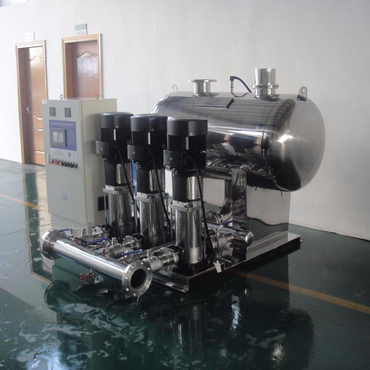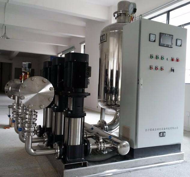 变频调速供水设备在运行时通过变频调速器控制水泵电机的速度,通过速度的变化保持水压恒定,当管网实际水压低于设定水压时,变频调速器会按顺序循环软启动相应台数的水泵来满足水压恒定,当管网实际水压高于设定水压时,变频调速器按相反顺序切掉相应的水泵电机。