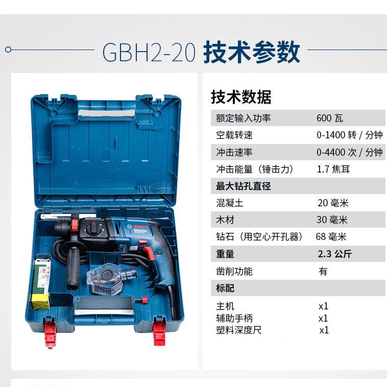 » 博世 家用电锤 冲击钻 电动工具 GBH2-20DRE 家用四坑电锤 电钻 多功能