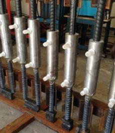 2、将地脚螺栓装置于支座的地脚螺栓孔中,螺栓伸出螺母长度为0.25倍螺栓直径。紧固螺母和套筒螺栓,预防套筒螺栓与支座底面联系处漏浆。
