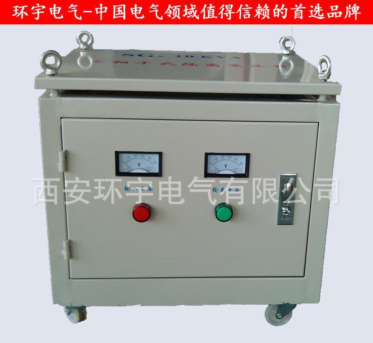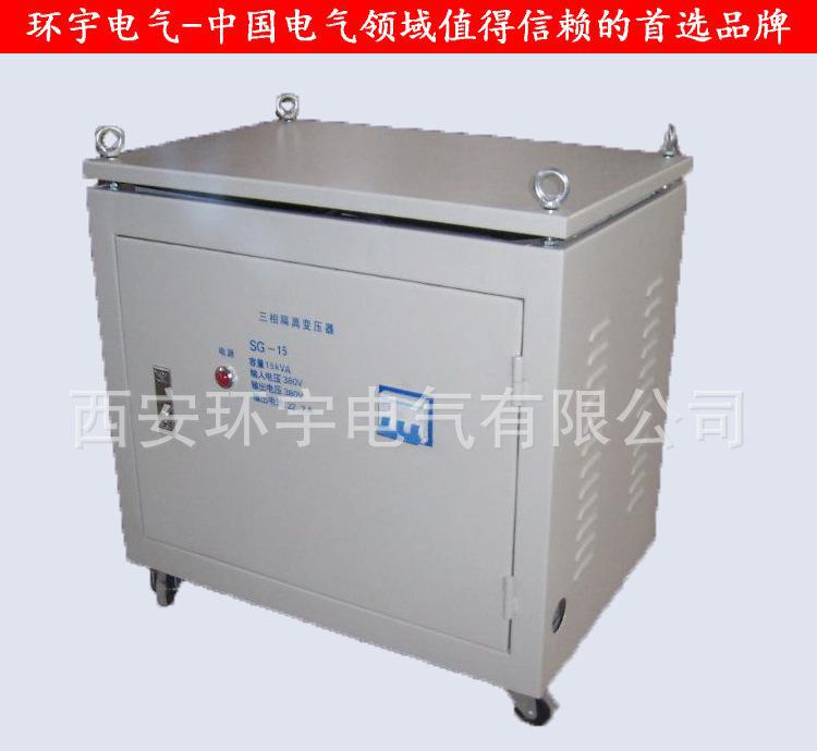 能及维护方便等优点■使用范围该系列隔离变压器广泛用于地铁、高层建筑、机场、车站、印刷、机床、码头、工矿企业及隧道的输配电及进口设备的使用等场所。■技术参数| 输入电压 | 额定电压±10% | 环境温度 | -15℃-+40℃ |  | 输出电压 | 额定电压+5%(空载) | 海拔高度 | <1000m |  | 效率 | ≥95% | 相对湿度 | <90% |  | 波形失真 | 无附加波形失真 | 安装场所无严重影响变压器绝缘的气体蒸汽、化学沉积、灰尘、污垢及其它爆炸性和腐蚀性介质. |  | 功能 | 具有输入电压、输出电压、电流指示 |  | 保护 | 具有过流保护可长期无人值守工作 |  | 绝缘电阻 | ≥50M |  | 电气强度 | 工频正弦电压2000V历时1分钟无击穿及闪络现象 | 凡不符合上述规定的特殊使用条件,应由使用单位和我厂协商确定 |  | 过载能力 | 二倍的额定电流,维持1分钟 |   ■规格型号及安装尺寸| 规 格 | 输入电压 | 输出电压 | 不带外壳产品尺寸(cm)/重量(kg) | 带外壳尺寸(cm)/重量(kg) |  | SG-5 KVA | 660V 400V 380V 200V 可根据客户要求订制 | 380V 220V 110V 36V 可根据客户要求订制 | 30×15×25/35 | 45×25×30/56 |  | SG-6KVA | 30×16×25/40 | 45×25×30/64 |  | SG-7KVA | 35×15×30/45 | 50×25×35/80 |  | SG-8KVA | 35×16×30/55 | 50×25×35/80 |  | SG-10KVA | 42×21×42/90 | 60×32×65/130 |  | SG-15KVA | 52×24×52/135 | 70×35×77/185 |  | SG-20KVA | 52×24×52/180 | 70×35×77/220 |  | SG-30KVA | 55×28×65/220 | 80×40×87/260 |  | SG-40KVA | 61×30×65/265 | 90×50×95/320 |  | SG-50KVA | 61×30×65/295 | 90×50×95/360 |  | SG-60KVA | 70×32×66/370 | 100×50×105/440 |  | SG-80KVA | 70×32×67/450 | 100×50×105/530 |  | SG-100KVA | 75×35×68/490 | 100×50×105/570 |  | SG-120KVA | 75×35×68 | 100×50×105/600 |  | SG-150KVA | 85×37×68 | 120×65×115/690 |  | SG-180KVA | 95×45×83 | 120×65×115/930 |  | SG-200KVA | 95×45×83 | 120×65×115/1010 |  | SG-250KVA | 95×45×83 | 120×65×115/1180 |  | SG-300KVA | 105×45×95 | 120×70×125/1450 |  | SG-320KVA | 105×45×95 | 130×50×135/1490 |  | SG-350KVA | 105×45×95 | 130×50×135/1600 |  | SG-400KVA | 115×55×105 | 140×60×145/1700 |